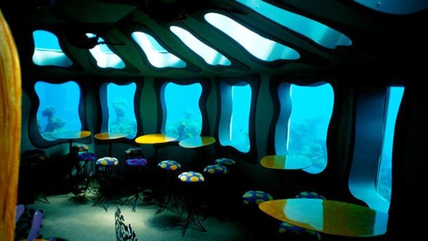 On the island of Fiji, at a depth of 12 meters, there is a diving Poseidon Undersea Resort complex. Calm atmosphere, amazing food and great service will allow nobody to stay indifferent. In it it is possible not only to have dinner, but also to live. If you want to feel the beauty of underwater life not only during your meal, it’s possible to stay here for more than one evening and book a hotel room with underwater panorama.